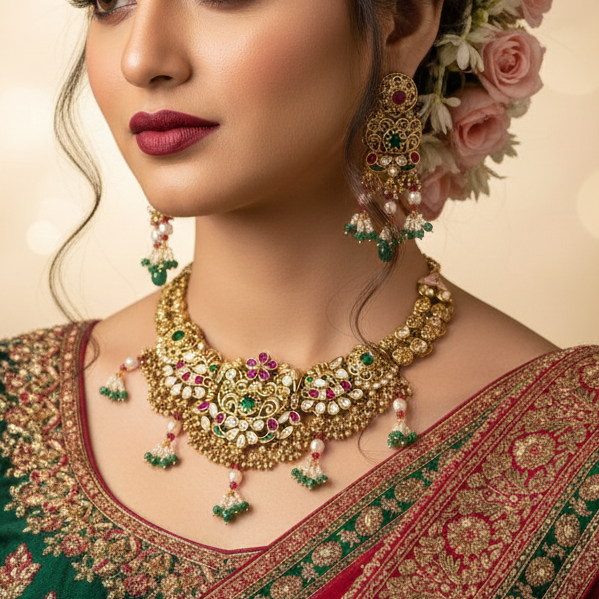 Multicolor Minakshi Rajwadi Heritage Necklace Set