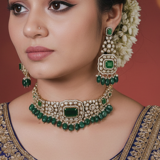 Aadhya Emerald Green Necklace Set